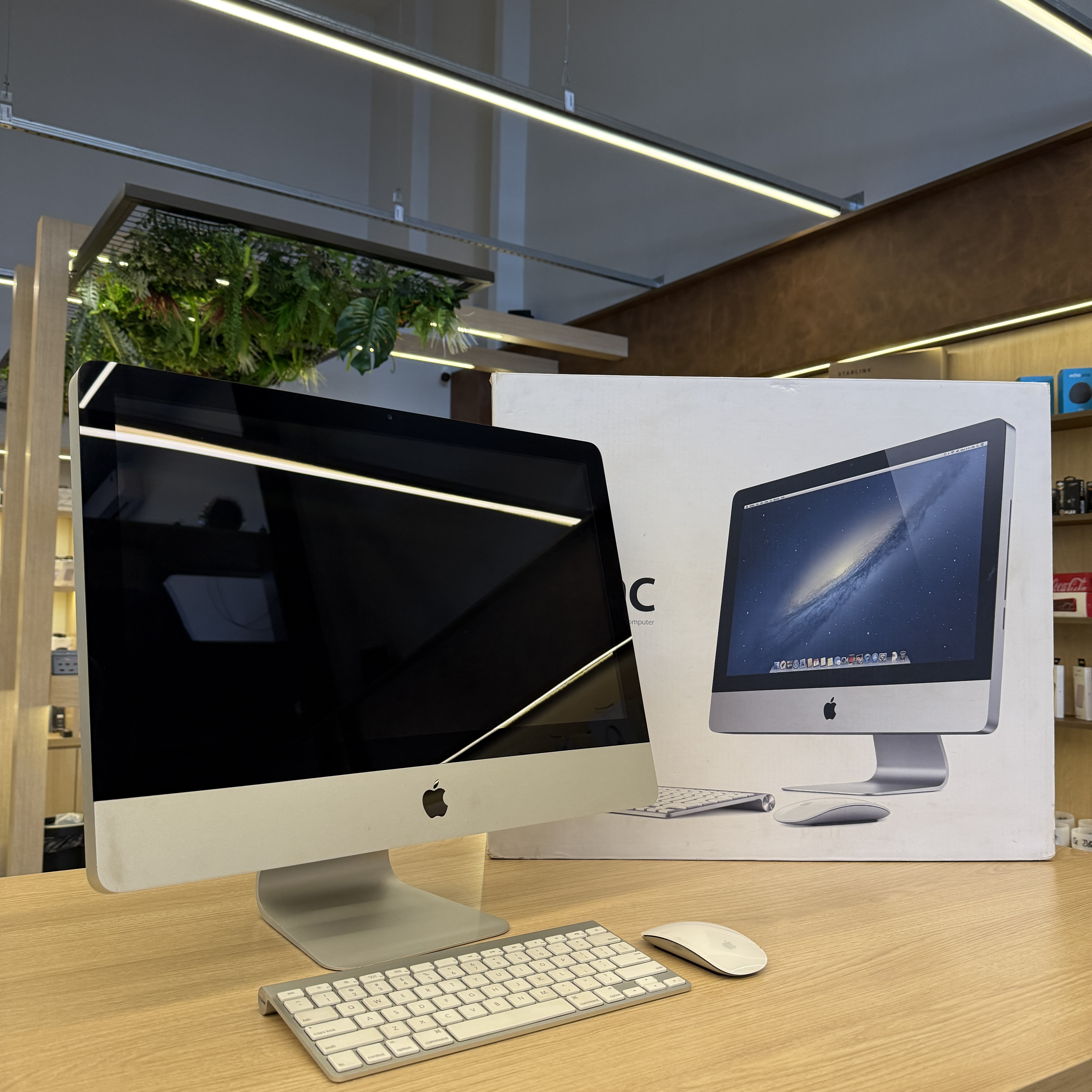 O modelo é o mid 2011 de 21.5 polegadas, com processador 2.5 GHz Intel i5 quad core, 32GB de RAM, 500GB de SSD e placa de vídeo AMD Radeon HD 6750M (512MB).